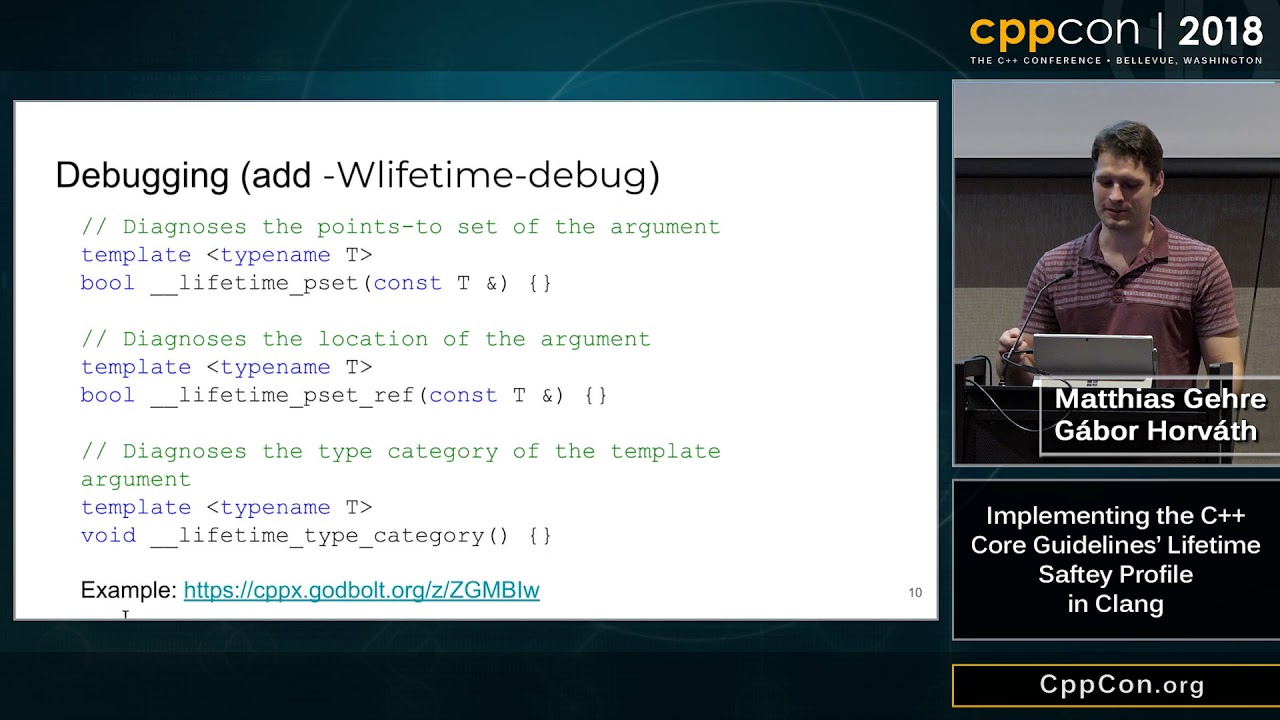 Explicit annotations are much more verbose, and don’t involve lifetime parameters. “For example, void f(int* p, int* p2 [[gsl::lifetime({p})]]) expresses that p2 must point to the same thing as p.”